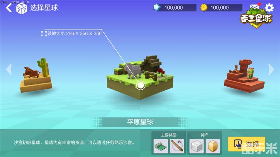 “我的星球”模式是多数萌新玩家的第一站。在首次进入这一模式时,每位玩家都可以从平原、沙漠与荒野三种星球地貌中挑选一种解锁自己的首个星球家园。