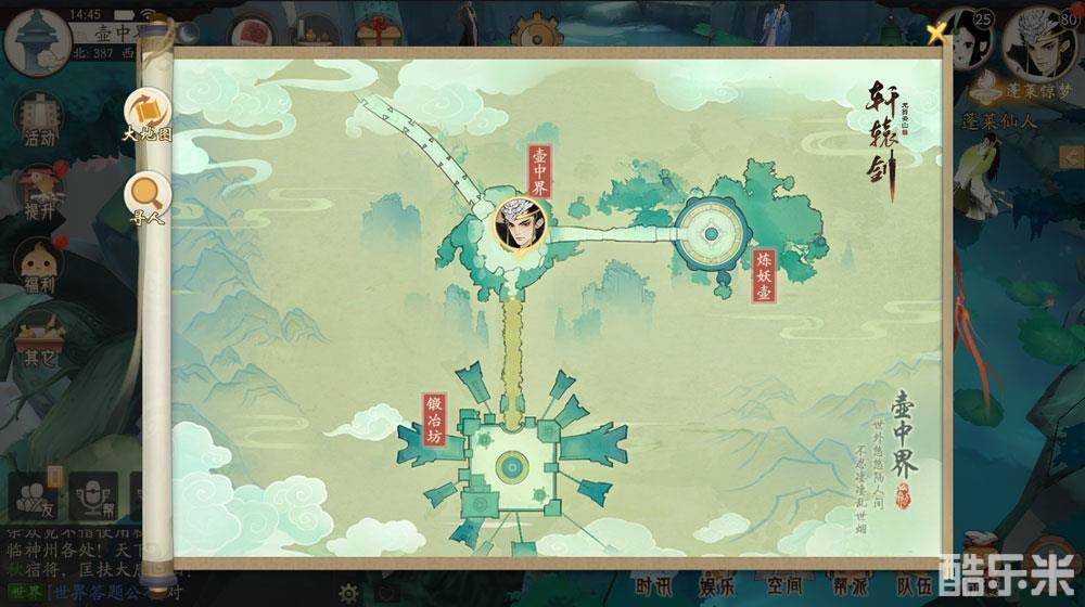 《轩辕剑龙舞云山》将“壶中界”重现,游戏中壶中界场景由“壶中界”、“炼妖壶”以及“锻冶坊”三个部分组成。