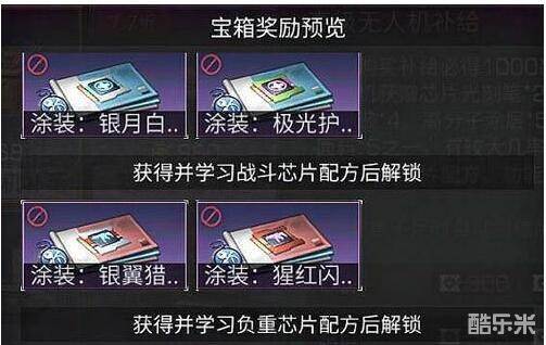 每种功能的无人机有三种涂装,分别是基础、初级和高级,而初级和高级涂装只能通过高级无人机补给箱抽取,可以从商队集训免费获得支票也可以用信用点直接购买,且必须解锁基础涂装才能获得高级配方。