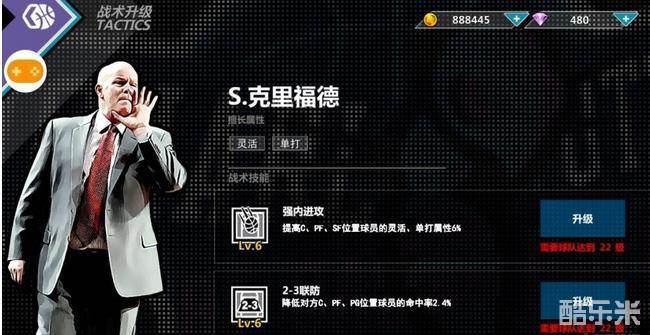 比赛时有效利用主教练的战术是提升胜率和评分的关键所在,升级战术后,产生的效果也会增加不少,但最好只升满1个,因为教练不出场不提供属性加成