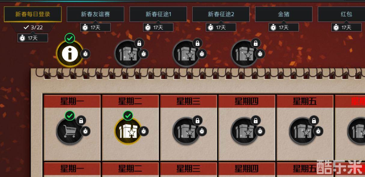 本次新春活动共分为每日登录、友谊赛、征途1、征途2、金猪以及红包,共6大章节!