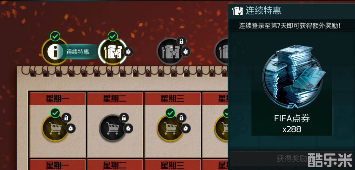 在新春每日登录章节中,玩家每天登录游戏都可免费领取不同奖励,错过领取时间也不必担心,玩家可以用过宝石补领!在本章节,连续登录奖励更为丰富,新春佳节里《FIFA足球世界》项目组全体工作人员为各位玩家带来了“拜年红包”,连续7日登录将可免费领取288点券,这是游戏上线以来首次玩家可以直接领取点券的奖励!还有更多连续登录奖励等你来拿!