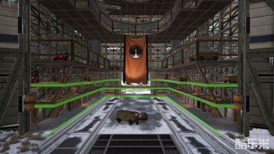 这栋绝地求生最高楼的实际搜索空间为三层(绿线所在范围),想到达上层甚至最高层可以通过跳伞的方式到达,但并没有物资。