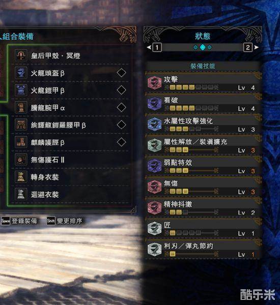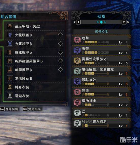 完全换汤不换药的配装。炎妃炎妃衍生比炎妃冥灯衍生多10%面板会心、少一个3级孔,在此孔填上浑身珠之后三类属性弹的会心和配装思路将一模一样。珠子在此不详细截取了,对照着技能插入相应的珠子即可。