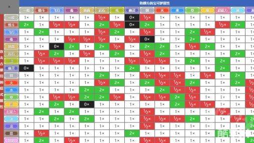 左边一列为发起攻击的技能招式属性,右边一行为受到攻击的宝可梦属性,表格只列了单属性之间的克制关系。