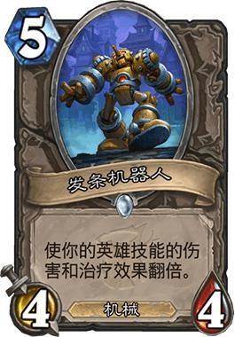 但是并不能作为单独的otk体系来用毕竟只有二十四点斩杀,砰砰计划通电机器人的加入让一口术的otk斩杀成了可能,通电机器人可以给发条机器人减费,召唤传送门在场情况下减费会累加(类似娜迦巨人机制),所以在刚才上述的斩杀方式中,只要有一张发条机器人被减一费,就能多打一张无面再复制一个发条,实现四十八点斩杀,九十六点回复(如果没变dk抽一口可太爽了)。