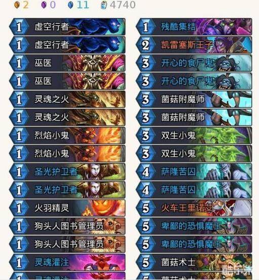 来自主播姜神的一套治疗园,治疗园作为女巫森林版本异军突起的后起之秀,在之后的几个版本基本上都是天梯与比赛中的常客,新版本补丁对萨隆苦囚的削弱以及奥秘,法术猎的崛起才算是把治疗园拉下了神坛。但是从一费开始就有蓝胖,烈焰小鬼,圣光守护者等高质量生物抢节奏,还有群体治疗配合食尸鬼combo,甚至有一费十一场功的梦想(后手烈焰小鬼,巫医,双食尸鬼),让治疗园在当前环境中对阵克隆展牧 野兽猎,天启骑等主流卡组还是存在一定的优势。