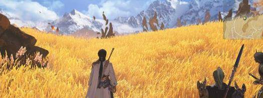 然后就是第一个场景:光明野,整体色彩偏黄,但不是那么刺眼。植被也是相对前作有不少进步,不再是单纯的整片贴图,而是设置为多边形贴图的集合,虽然凑近看还是会有一些棱角,不比欧美大作那种逼真效果,但宏观方面欣赏,还是能很好的体现出湖光山色的美景效果的: