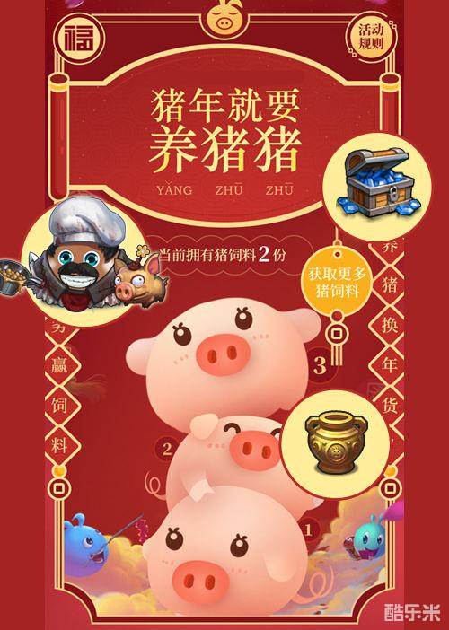 活动期间、登录游戏完成定向越野-新春庆典的任务,即可获得“猪饲料”,将猪饲料给你的猪猪喂食,养胖它们,可换得奖励。