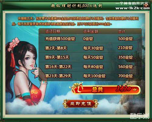 获得护身的道具之后,建议你再去完成一下理财计划。如果你想要在江湖中长久地混下去,那么通货是必不可少的,而完成理财计划能让你以最小的代价获取最多的资源,从而使你拥有长久混迹江湖的资本。完成以上的内容之后,再来就是跟随着主线的剧情完成任务了,当然,限时的活动也要参与,比如“娇俏霜儿”和“江湖至尊”,这些活动能为你带来超多的收益。再之后就是命由天注定,看个人的机遇了。