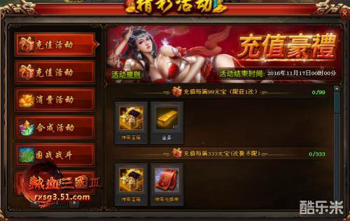 神兵在手,天下我有。可是想要神兵,还得在幻境奋斗一番,在51《热血三国3》幻境中与神将名将切磋、跨服战、活动均可以获得神兵碎片,集齐一定数量的碎片即可将神兵唤醒。