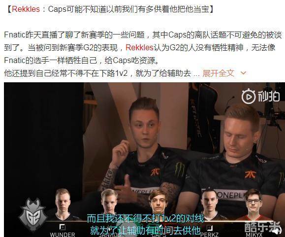 英雄联盟Caps走后Fnatic全败垫底 中野发推道歉