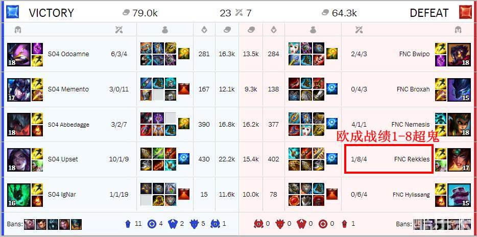 FNC战队就惨了,在首战就引起了巨大的风波。当时FNC打SK陷入巨大劣势,多次暂停要求重赛。而LEC官方不仅同意了重赛请求,还让两队重新BP。于是FNC战队就把SK战队上一把玩得好的英雄全禁用了,最后却没打赢对方。这件事让FNC战队的名声一下子跌入了谷底,败了太多路人缘。