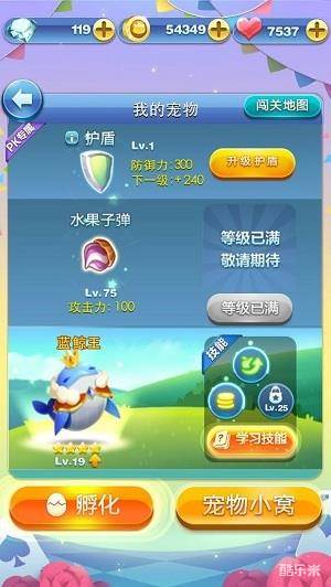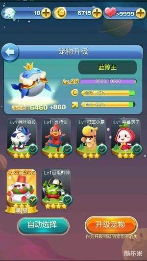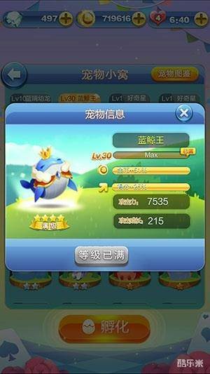 当宠物提高到满级的时候,无论是宠物的攻击力与闯关的加成都是最高的。满级的蓝鲸王在攻击关卡boss的时候,可以很快的消除boss,同时在关卡结束之后,还可以获得51%的金币加成与25%的分数加成。但是培养一个宠物消耗的经验值还是比较多的,所以我们需要不断地获得宠物来提供升级消耗的经验值。