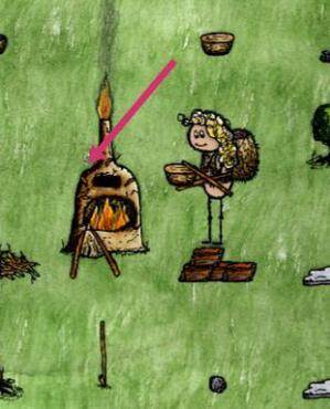 用木钳夹起未煅烧的坩埚,划向燃烧的有风箱的土窑,然后放在地上,一个烫手的坩埚就完成了|・ω・`)