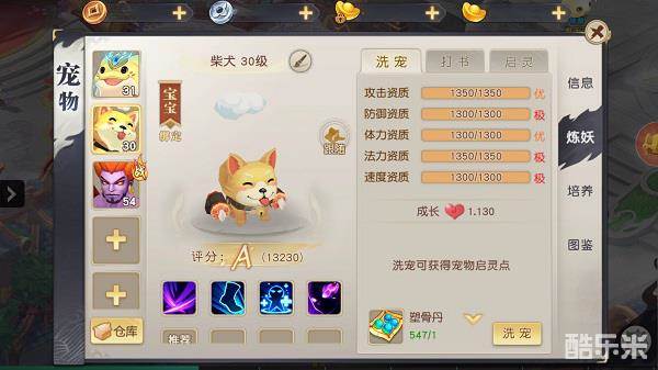 注:变异宝宝往往比普通宝宝的资质高出很多,神兽类宠物虽然无法变异,但可以通过解锁皮肤来获得更高的资质增益。进化与飞升能够极大改变珍兽的资质,使之成为神兽。