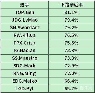 英雄联盟LPL下路亲近率曝光 马哥蛇蛇如胶似漆