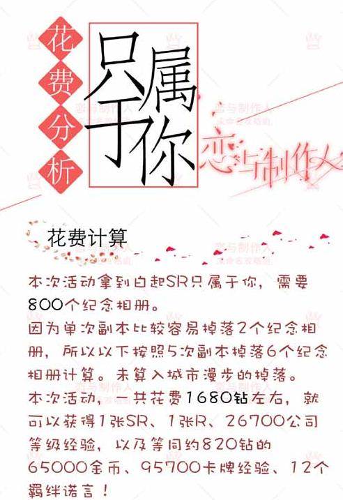 本次按攻略组计算在1680钻石左右就能获得活动卡牌,具体分析请看下图~