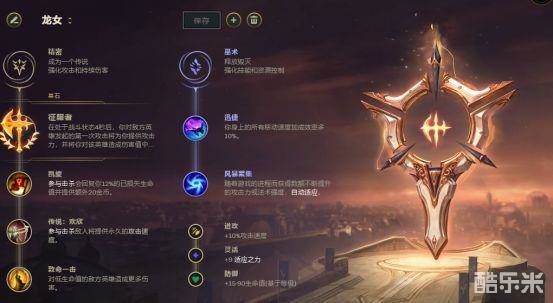 在符文方面,小编推荐各位召唤师使用的是一套爆发符文。这里主要来说一下迅捷和气定神闲。对于龙王来说,移动速度的增加还是十分必要的,不论是被动的伤害输出还是技能的释放,走位都是十分关键的。龙王是一个比较耗蓝的英雄,点出气定神闲有利于增强它在团战中持续输出的能力。