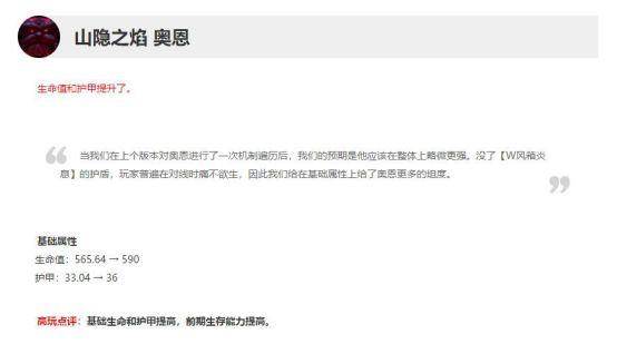 新版本中奥恩加强了基础生命值和护甲,前期的生存能力有了不小的提高。这让他更容易顺利过渡到中后期装备成型,有奥恩在场就意味着己方队伍会在18级的时候提前取得5000的经济领先,这样的经济和装备优势是任何一支队伍都不想错过的。