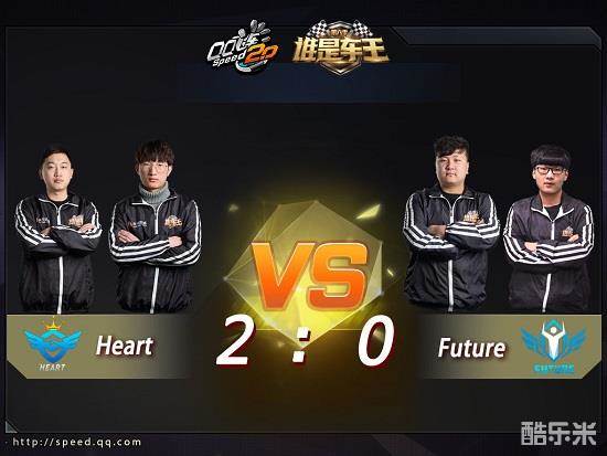 谁是车王S6团队竞速半决赛第三场的比赛,在前两场的胜者组之间展开。对阵双方是“Heart”车队和“Future”车队,Heart派出的是江章闯和孔云峰,Future派出的是杜洪伟和尚涛。最终,Heart车队毫无悬念,以总比分2:0率先晋级总决赛!