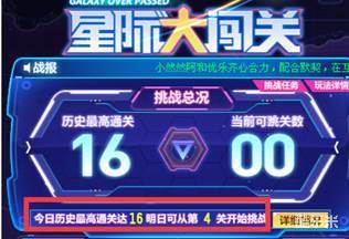 如您在挑战中刷新了最高通关记录到指定关卡,第二天将会获得跳关资格,可直接从指定关卡为开始挑战,最高闯关的成绩依据的是单人和互助里最高的成绩。