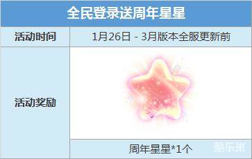 1.26-3月版本全服更新前,只要登录即会送一个周年星星哦!