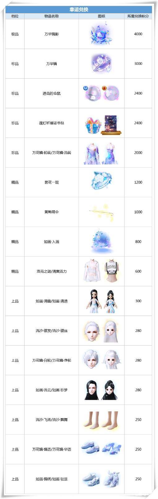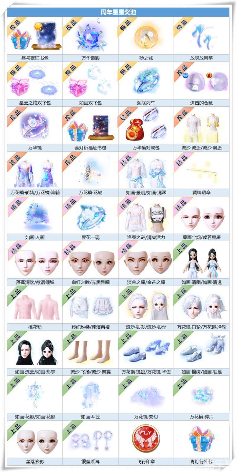 2. 累计使用周年星星达到一定次数时,必得本期尚未抽中的上品及以上奖励+一定甜蜜值
