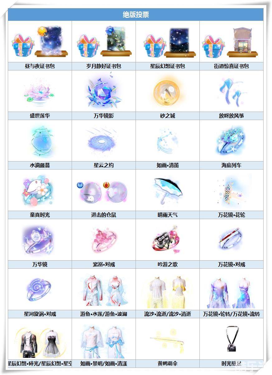 5. 绝版券可用于给你喜爱的本期奖池里的奖励进行投票,男女物品可分别投票哦!男女榜单排名前三的物品将会打上绝版标签,后续将不再产出,具体请详见攻略说明>>>