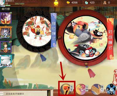 1、首先点击主界面下方的法宝按钮,进入法宝页面。