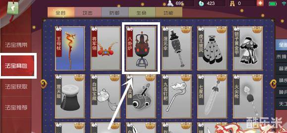 4、法宝一共有四个等级,普通、精良、神兵、天工,刚解锁的法宝默认为普通品质。