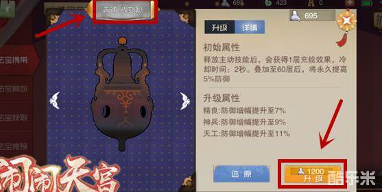 在闹闹天宫手游中法宝究竟该怎么升级呢?在闹闹天宫手游中小伙伴们的法宝可以通过升级来提升战斗能力哦~!那么下面就来给大家介绍一下吧~!