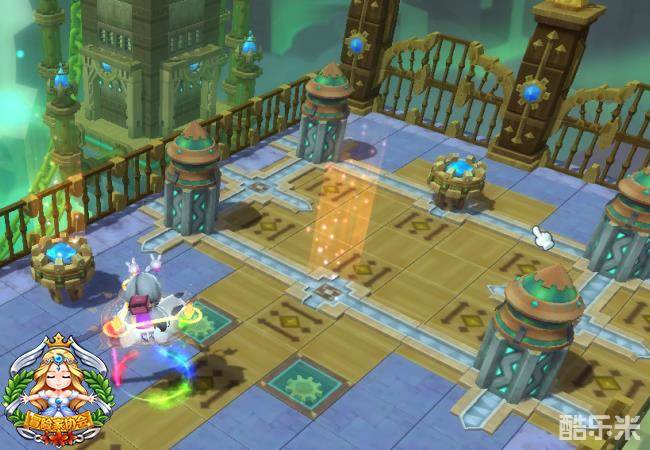 2. 消灭完第二个平台上的怪物之后,我们就可以继续移动动力源前往下个平台.(注意移动躲避小怪物们的攻击哦)把动力源移动到下图中的位置就可以启动机关通往下个平台.