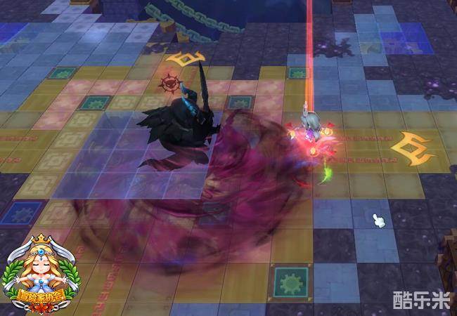 裴伊卡把镰刀举到侧面短时间蓄力之后向前挥刀,并且身上带紫光.这个技能威力比较大,建议躲到BOSS身后2米位置.血不满,或者防御不够的情况下,很容易被秒死.(尤其开了神龙,中招非死即伤)