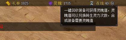 玩家在合成7转或以上的转生装备时,需要用到一定数量的灵魄值,装备转生等级越高,合成装备过程消耗得越多灵魄值哦。另外,这些装备合成还存在一定成功几率,如果不幸合成失败,还是要扣除灵魄值,你还得多花费一些灵魄值来合成哦。