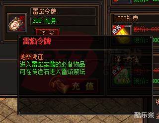 玩家要想获得雷焰令牌道具,可进入到赤月传说礼券商城里购买,每个雷焰令牌售价为300礼券。