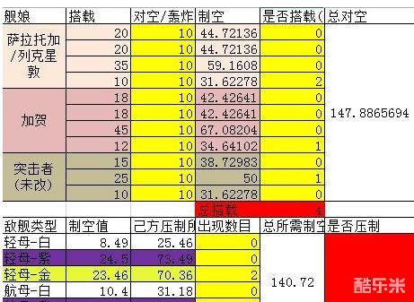 此图敌方制空最强阵容为2金色轻母,如图4格海毒牙确保制空, 计算如下:
