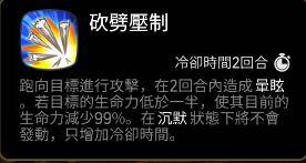 灭团点在于40%以下的砍下,砍劈压制2连,这个技能是造成团灭点的主要原因,防御力不够的角色或者是被破防打下半血之后直接会被压制成1%的危险血量,然后被小怪补刀补死,这个阶段就相当考验角色的爆发能力了。
