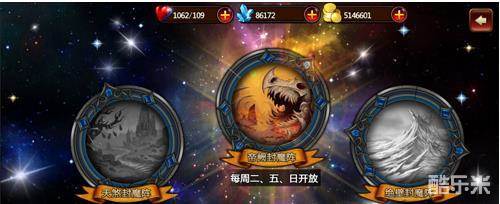 封魔塔分为天煞、帝阙、绝壁三个封魔阵,玩家可根据怪物类型搭配出相应的阵容,当副本开启后会不停的刷新怪物,玩家在指定时间内击杀的怪物越多获得的奖励就越丰厚。战斗中英雄死亡后可复活3次!不过每次死亡,都会降低关卡评价。