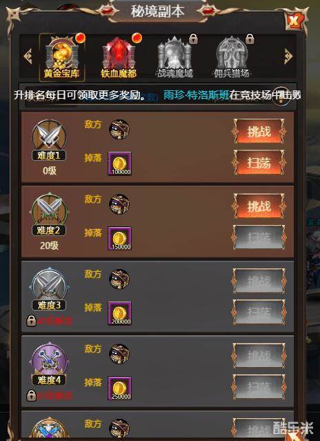 黄金宝库顾名思义就是金币奖励副本,在秘境副本中可以找到黄金宝库。