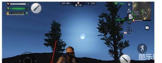 压力值显示在左上角第二个进度条,刚进入时为白天,可简单的搜寻物资,然后就可以准备度过第一个夜晚。需要注意上方的时间提示条,在天黑之前,尽快前往光源区避免自己的压力值升高。