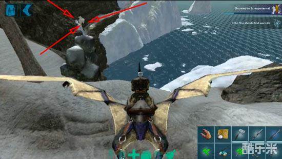 神器天主洞穴入口位于地图西北方的一个海边悬崖上方,距离蓝色方舟并不远,坐标:19.1X19.0,直接飞到海边,寻找悬崖即可,非常好辨别。