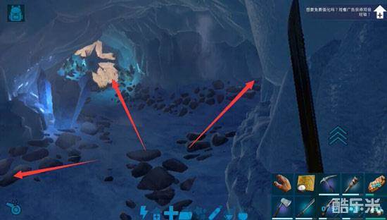 一、进入洞穴,选择中间的洞口,然后右拐,左边是一个悬崖坑,不走。