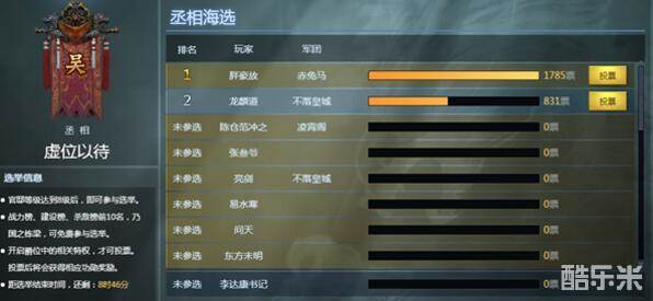 2、战力榜、建设榜、杀敌榜前0名可以免费参加丞相选举;