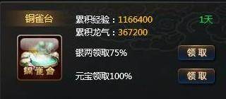 银两领取:领取75%的累积资源