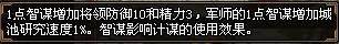 大家可以看到,将领的每一点智谋都会增加10点的防御,这个在斗将中是非常高的。很多朋友只会追求勇武高的。这样就会放弃了防御,如果并不是那些超高攻击的将领,放弃防御往往会在战斗中失去优势的。