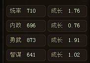 比如图上的这个成长显示,将领的勇武高达1.91,智谋才1.02,这个就是只追求攻击的将领,如果没有在装备宝石上镶嵌智谋来补上,那么防御就会很低,这样在斗将上只能打速战速决。如果暴击不高,那么就会很容易被别人打死的,高攻的将领几下就被别人打下的话,那就算再高的攻击也起不了作用了。所以除了高攻之外,防御也是我们要考虑的属性来的。