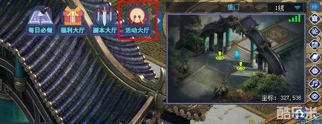 查看面板进入方式为点击主界面右上角的【活动大厅】,如下图