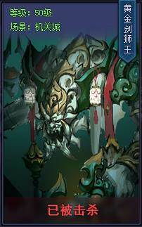 50级场景:【机关城】,BOSS:黄金剑狮王