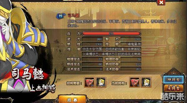 最后编辑于6年前纵横九州玩家们可以通过将神殿中神将台招募神将:关于、司马懿,神将究竟是什么概念,我们一探究竟。